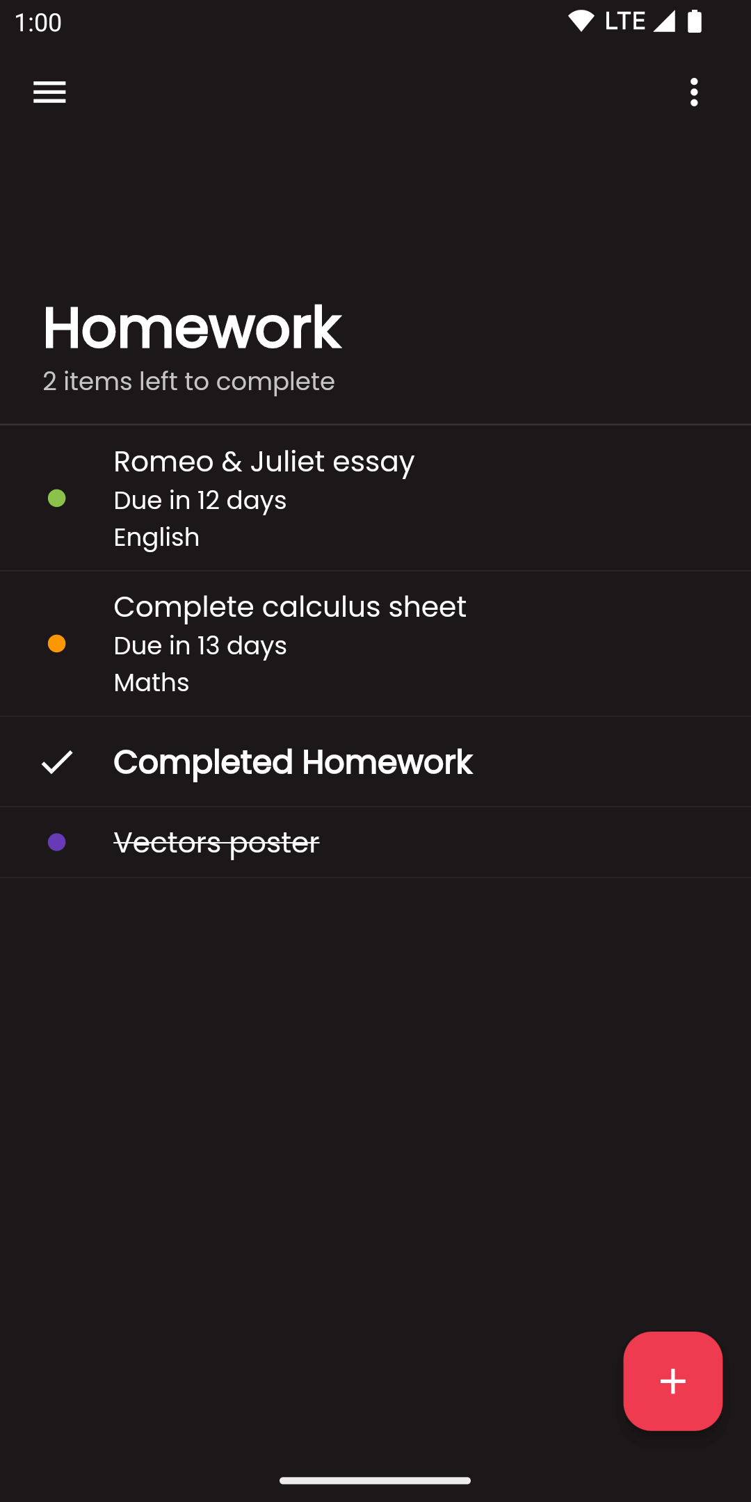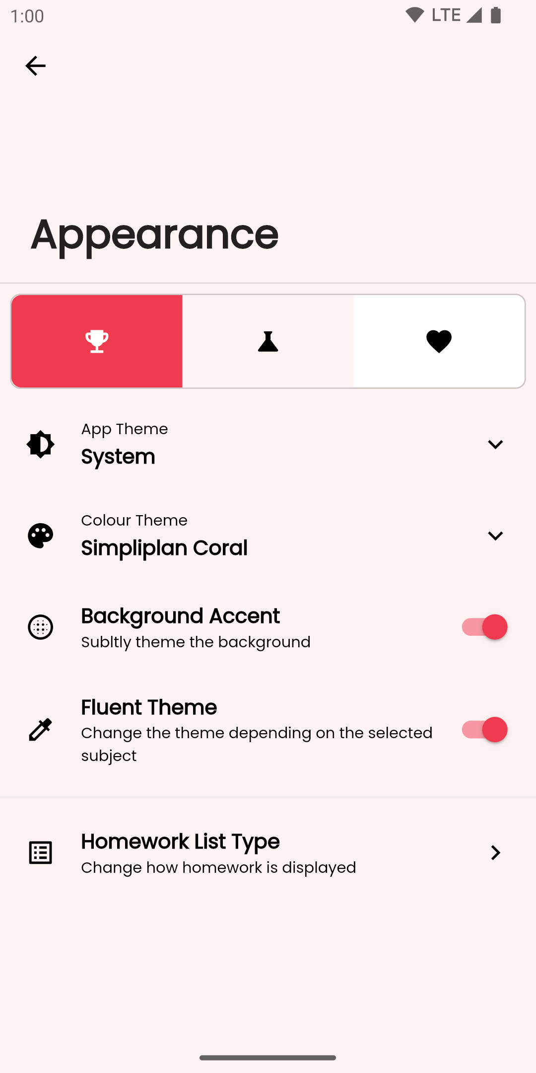 There's several ways to display your homework, so you can choose what works best for you. Paired with the variety of colour themes and appearance options, you can customise Simpliplan however you like.