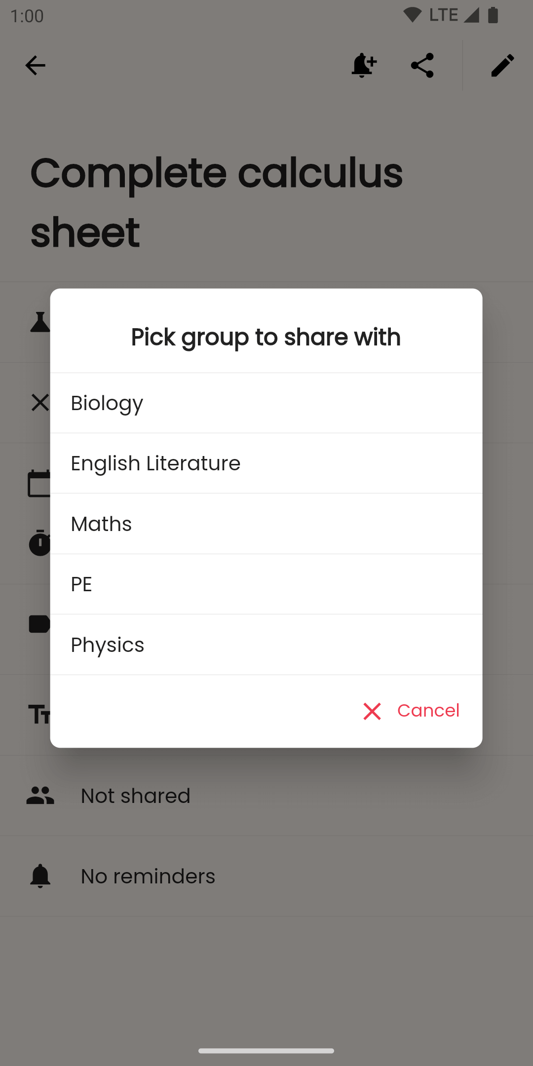 Create a group to get started. Invite your classmates, share some homework, and everyone can add it to their list.